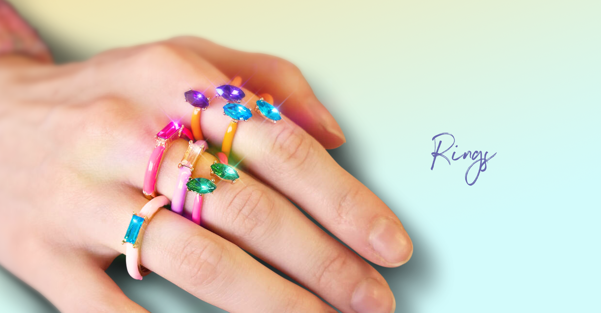 Bright Enamel and Glass Stone Ring