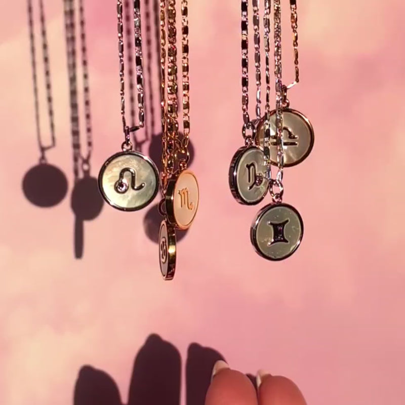 Have you ever felt connected to another star sign? Well, we've got the perfect gift for your favourite zodiac lover. Enter our 'It's a sign!' Mother Of Pearl zodiac pendants, gilded in gold plate and suspended from an 18" Figaro style chain. The perfect birthday gift for her.